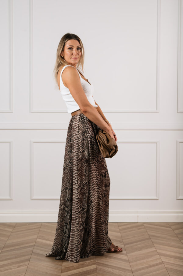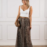 Õhtuseks ürituseks kanna seelikut siidpluusi ja kõrgete kontsadega, et rõhutada selle glamuurset karakterit. Päevasel ajal kombineeri minimalistliku topi ja madalate sandaalidega, et luua šikk, kuid pingevaba boho-elegantne look.