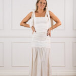 Kombineeri kleit valgete rihmikute ja korv-kotiga muretuks päevaseks look’iks või lisa väikese kontsaga sandaalid õhtusteks üritusteks. Reguleeritavad lipsudeks seotavad õlapaelad annavad kleidile mängulise ja luksusliku ilme, olles samas ka praktilised.