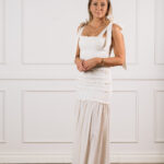 • Lõige: veniv smock-ülaosa, alt laienev midi-seelik
