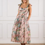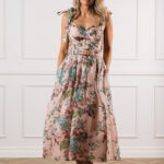 Stiilisoovituseks vali õhulised rihmikud või kontsakingad, lisa peened kuldsed ehted ning väike käekott, et rõhutada kleidi elegantset ja naiselikku olemust.
